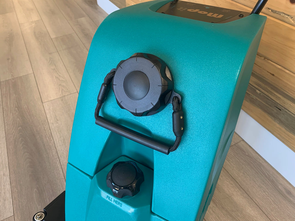 To install simply unscrew the clean out cap on the front of your mopit, slide on the plastic handle mount, and then put your clean out cap back on the Mopit and you're ready to go.