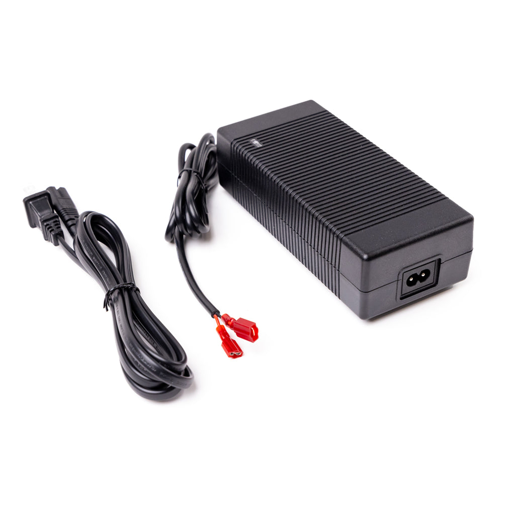 This is a high quality 24 volt DC 5 amp charger. When the indicator light is Red the batteries are charging and when the indicator light is green the batteries are fully charged.