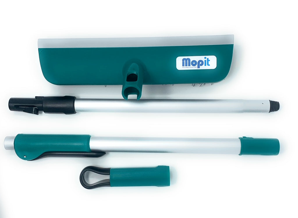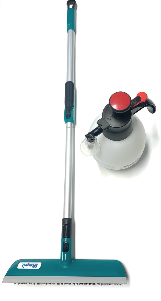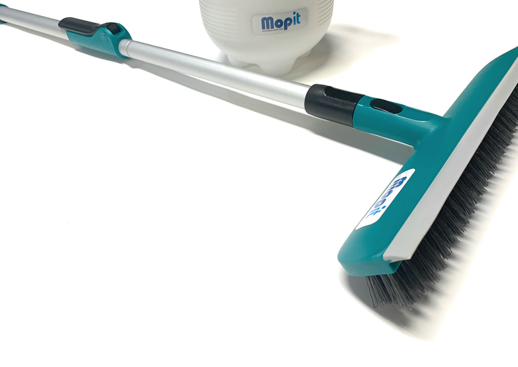 The Mopit Reach Tool set is the perfect companion to the Mopit.  This tool makes it possible to clean those hard to reach areas where the Mopit can't go.  Use the 2 liter hand pump sprayer to apply cleaning solution to any surface then scrub the area with the brush, and squeegee the dirty water to a place that the Mopit can pick it up.