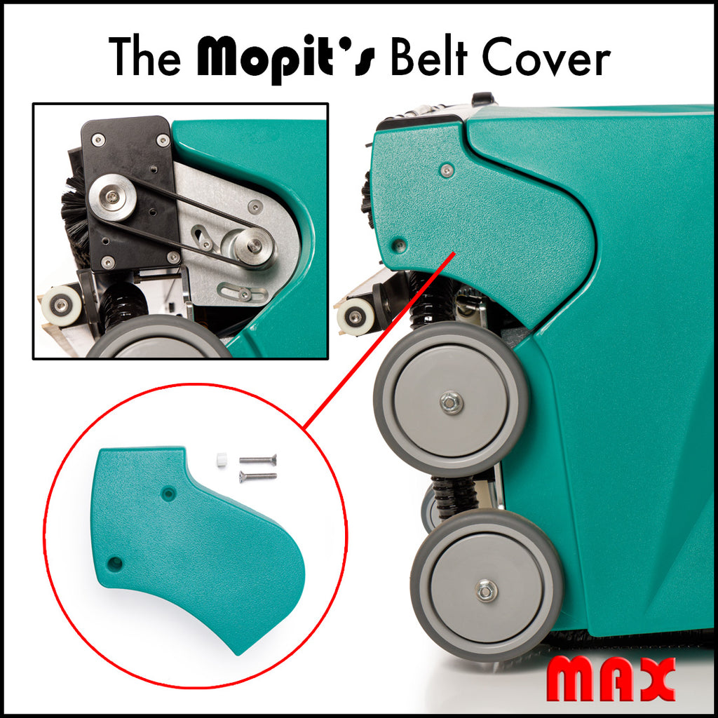 This is a Mopit MAX plastic belt cover. For Mopit MAX model only. Comes with 2 mounting screws. The small white spacer, shown in the video, is no longer used with this newly designed black belt cover.