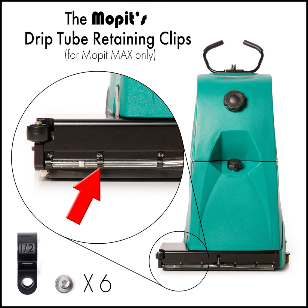 These clips and screws hold the drip tube on to the Mopit MAX.