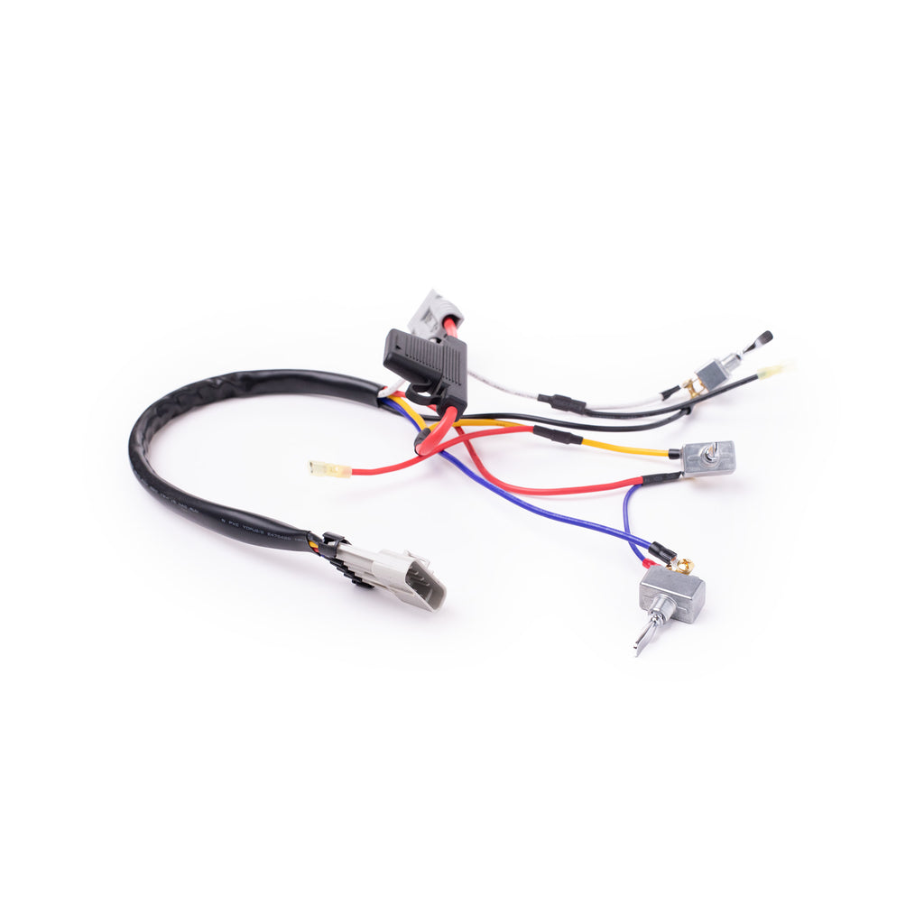 This is the upper section of the wiring harness for the Mopit mini. Comes with the 3 switches and fuse already installed. For the full wiring harness set, please click here.