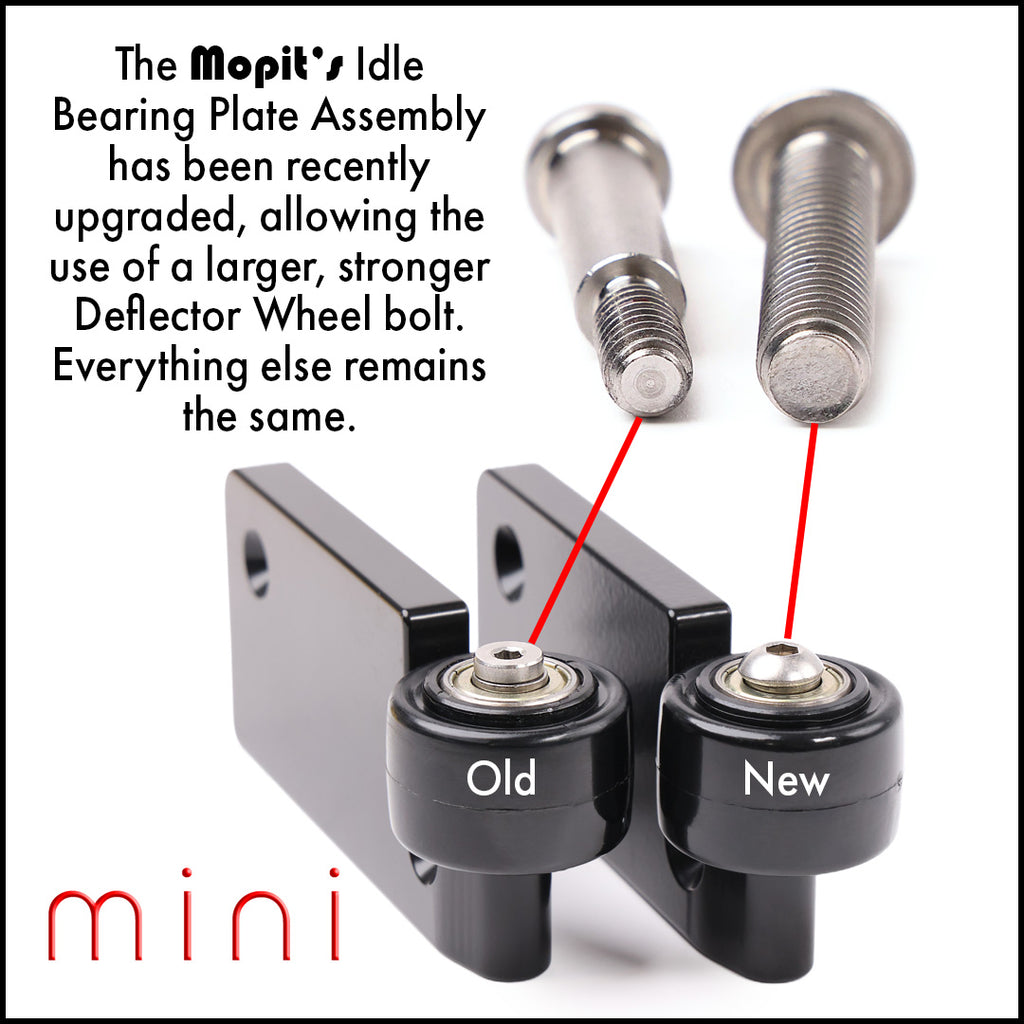 The Mopit mini idle bearing plate assembly comes fully assembled with the idle bearing hub.